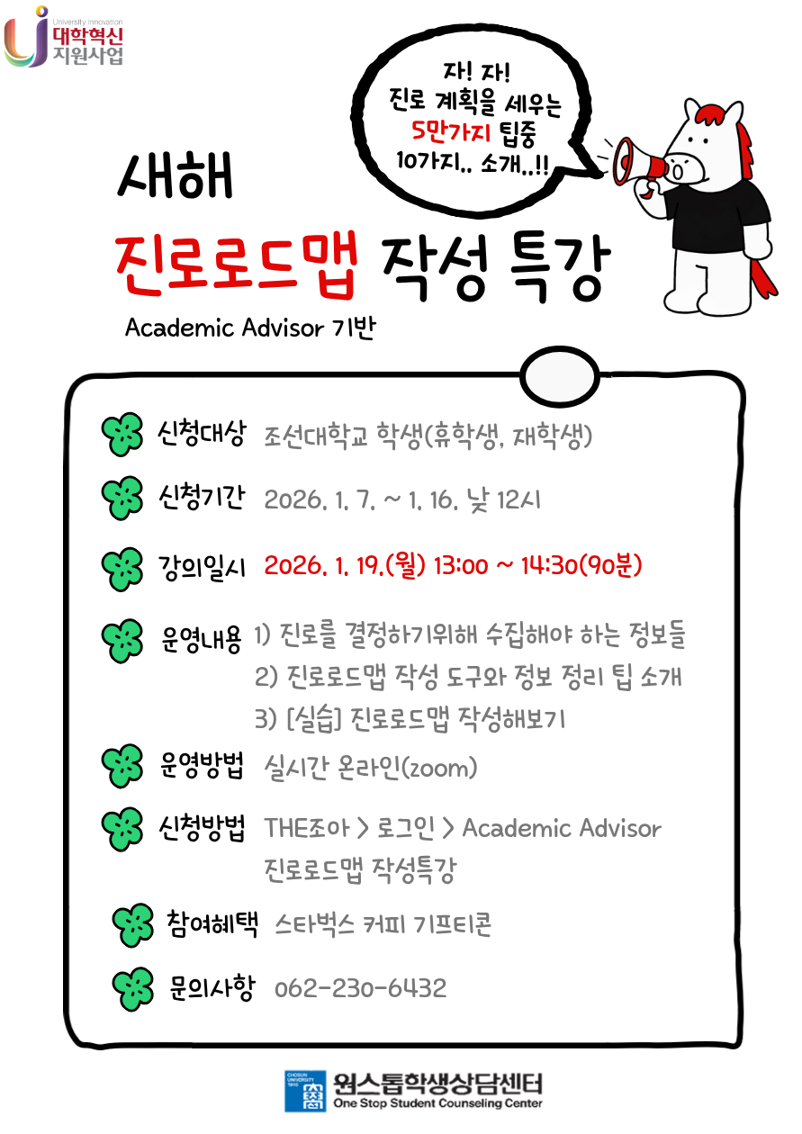 원스톱학생상담센터에서 2026년 새해를 맞이하여, 알찬 진로계획을 세우고 싶은 학생을 대상으로